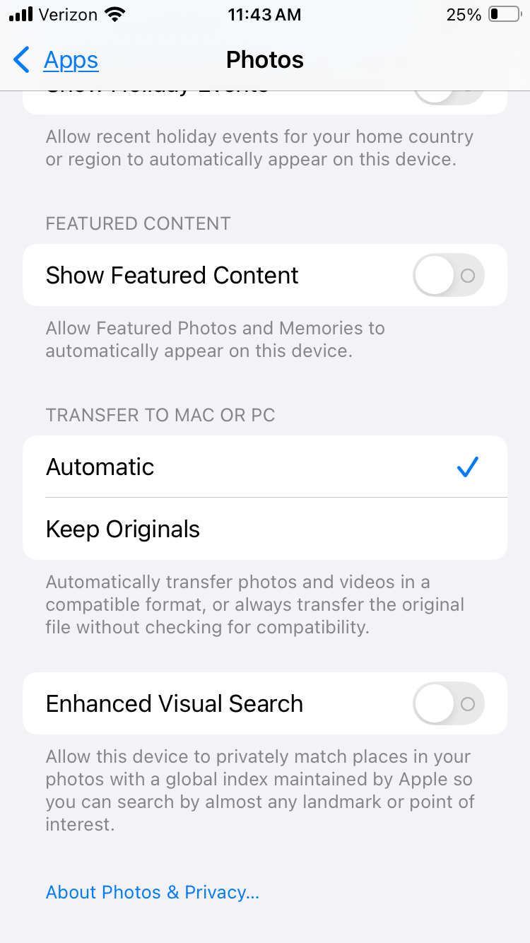 This morning while perusing the settings of a bunch of apps on my iPhone, I discovered a new setting for Photos that was enabled by default: Enhanced Visual Search. (I manually disabled it before taki