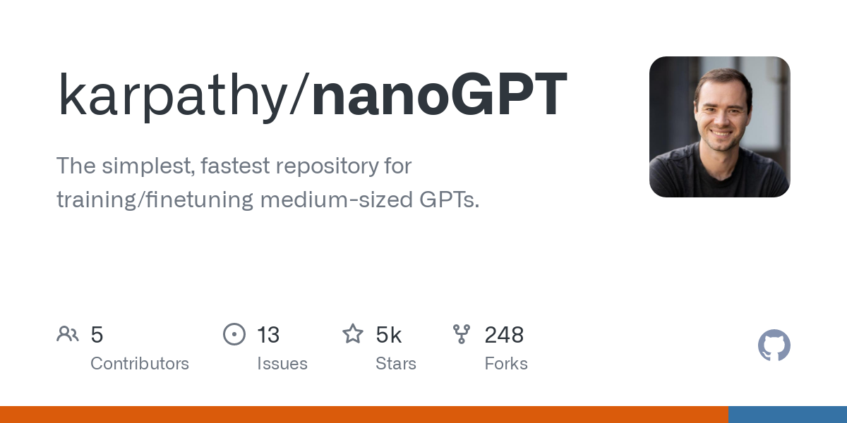 The simplest, fastest repository for training/finetuning medium-sized GPTs. - GitHub - karpathy/nanoGPT: The simplest, fastest repository for training/finetuning medium-sized GPTs.