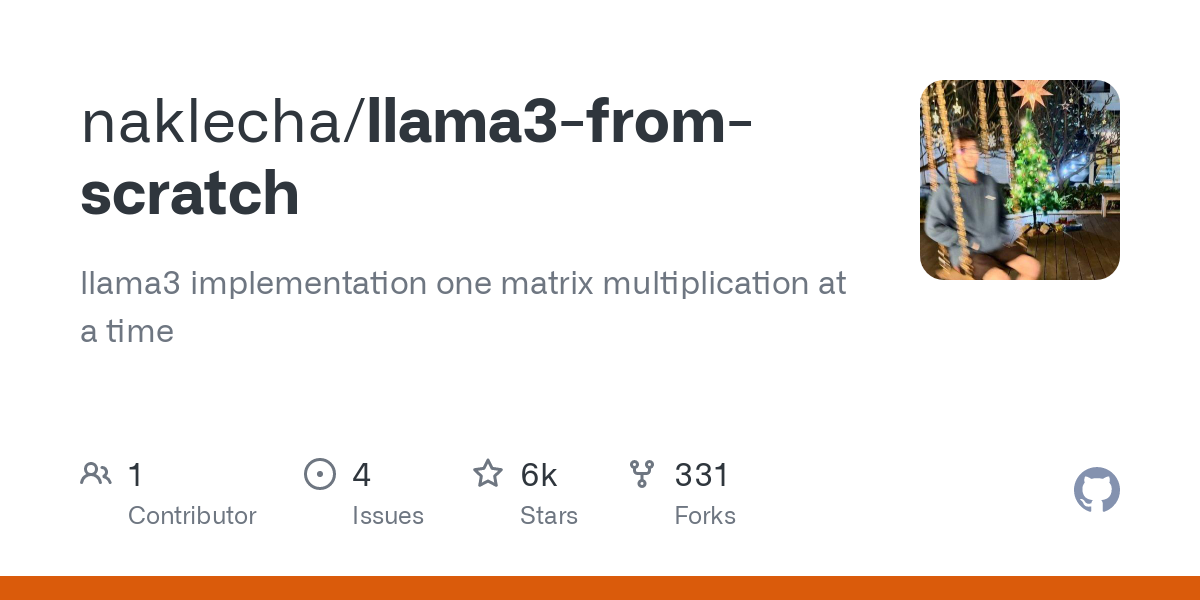 GitHub - naklecha/llama3-from-scratch: llama3 implementation one matrix multiplication at a time