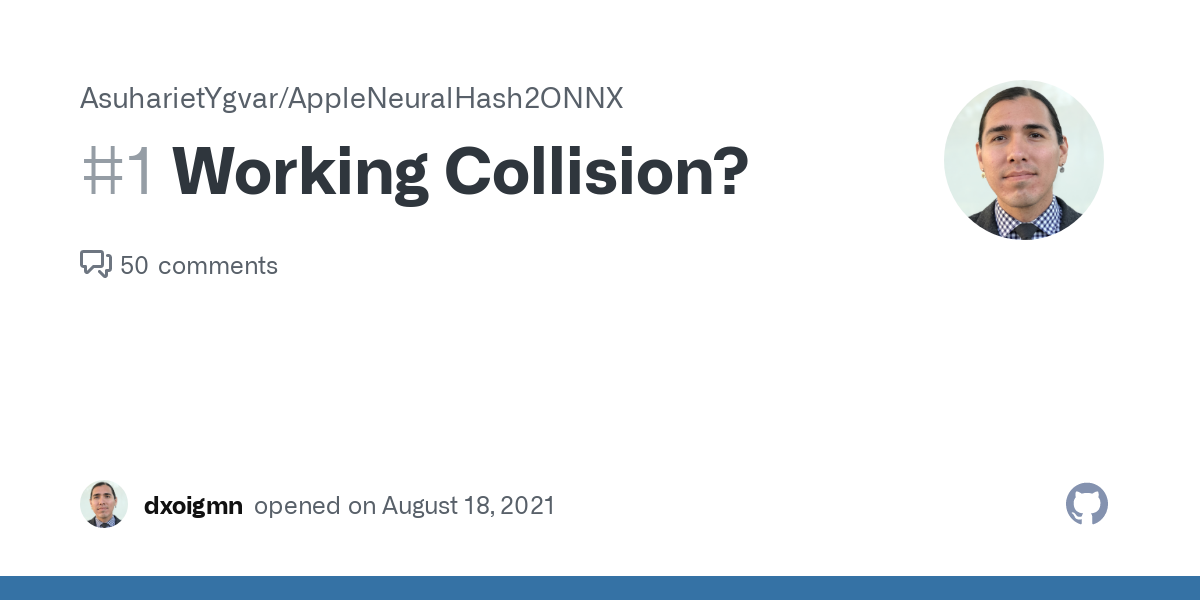 Working Collision? · Issue #1 · AsuharietYgvar/AppleNeuralHash2ONNX