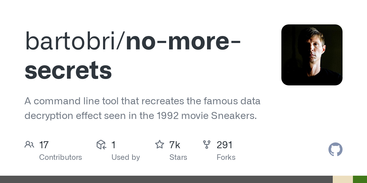 A command line tool that recreates the famous data decryption effect seen in the 1992 movie Sneakers. - GitHub - bartobri/no-more-secrets: A command line tool that recreates the famous data decrypt...