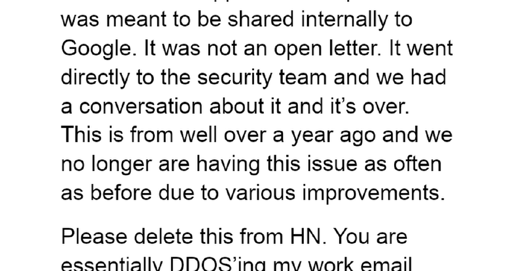 STOP EMAILING ME AND CALLING THE LIBRARY ABOUT THIS This was shared without my permission. This was not supposed to be public. It was meant to be shared internally to Google. It was not an open lette